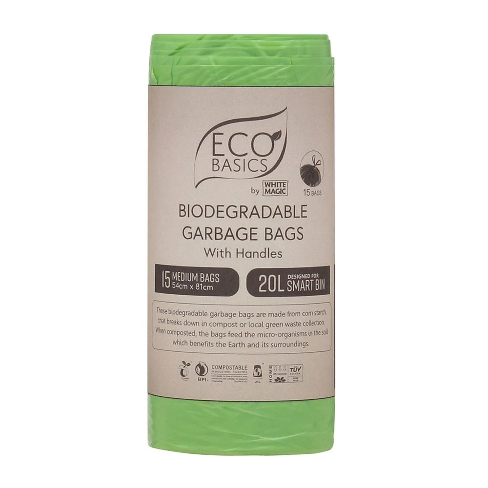 Take out the trash in eco-friendly fashion with the Eco Basics 20 Piece Biodegradable Garbage Bags Set!