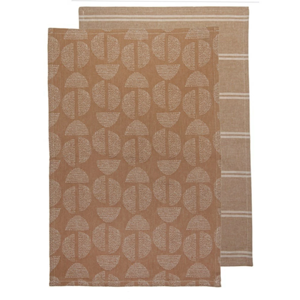 Embrace a natural aesthetic in your kitchen with the beautiful Ladelle Splice Set of 2 Kitchen Towels Ginger. With a unique cotton jacquard design, the Ladelle Splice Set of 2 Kitchen Towels Ginger shows off a stylish pattern of delicate semi-circles gracing a warm ginger backdrop. Renowned for its strong, flexible and easy care properties, these tea towels are constructed from 100% recycled Indian cotton to guarantee them a spot in your kitchen for years to come. Use the for wiping up spills, drying dishes and keeping a clean and tidy kitchen environment. Enhance your kitchen area with more accessories and contemporary colours from the Splice collection. The Ladelle Splice Set of 2 Kitchen Towels Ginger can be cleaned in the washing machine for effortless maintenance.