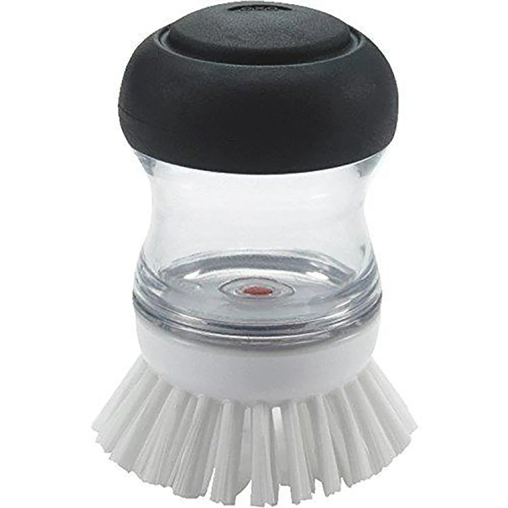 Try the OXO Good Grips Soap Dispensing Palm Brush for squeaky clean, one-handed washing up